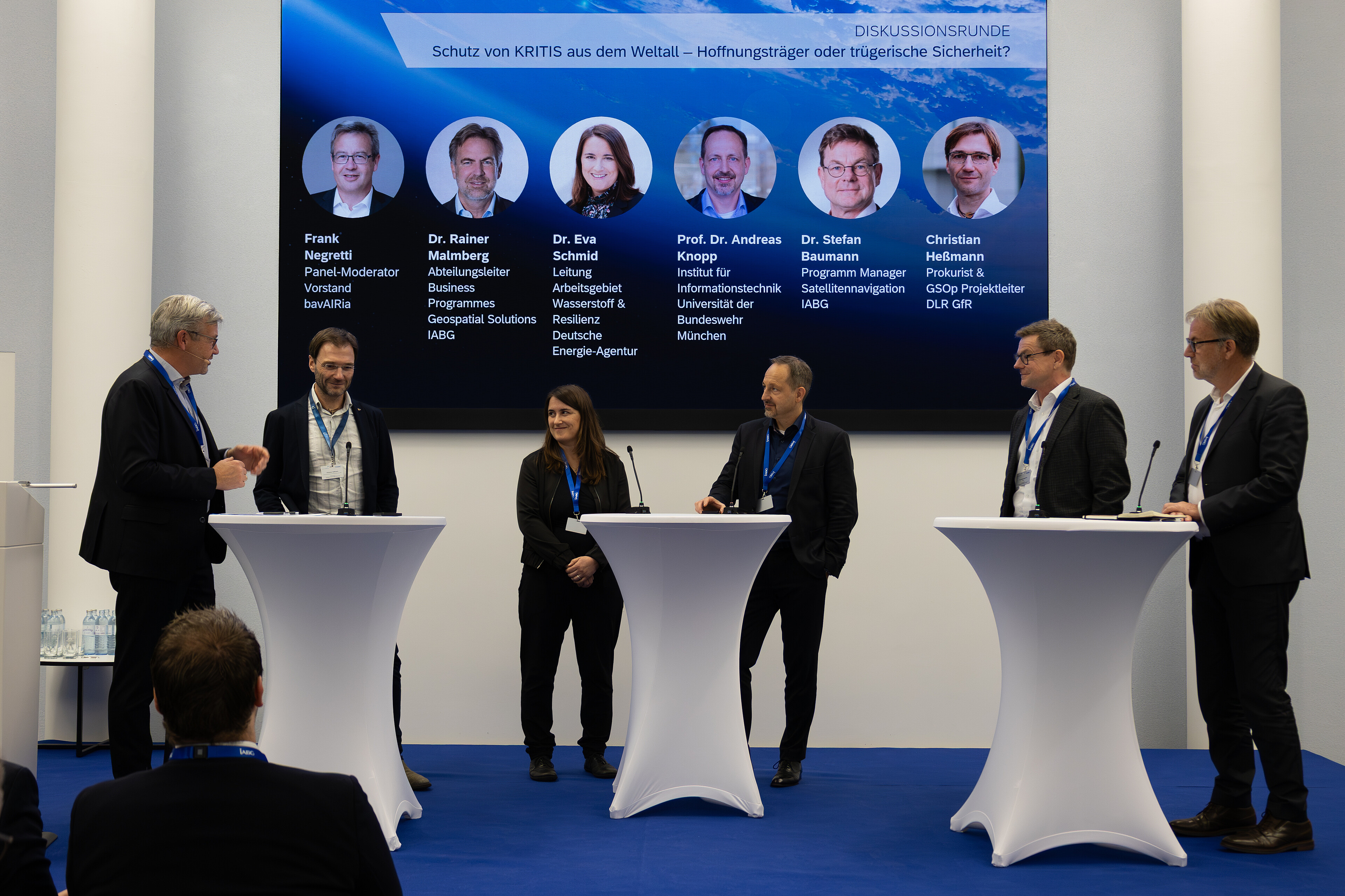 A further discussion addressed risks arising from technical faults, cyberattacks and deliberate manipulation of space-based services. The exchange highlighted the need for robust architectures, international cooperation and continuous development. Examples from IABG’s work – such as spoofing and jamming analyses conducted in their own GNSS laboratory – demonstrated the practical implications of these challenges.